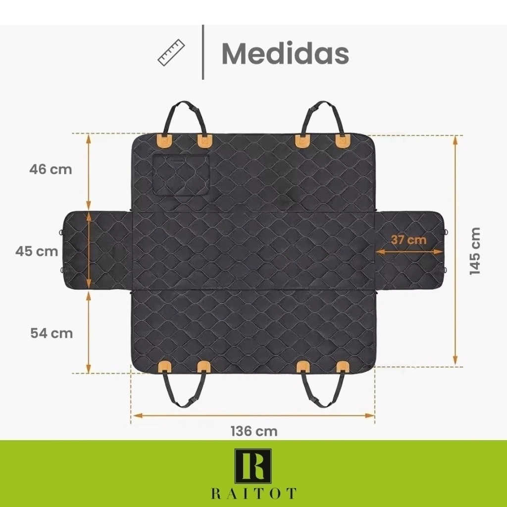 • Protección contra Arañazos y Desgaste: Protege el asiento trasero y las puertas del vehículo de daños y suciedad causados por tu mascota.