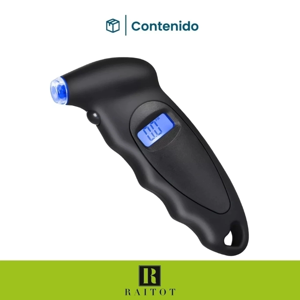 El Medidor Digital de Presión de Neumáticos Raitot es la herramienta ideal para monitorear y mantener la presión adecuada de tus neumáticos, garantizando seguridad y eficiencia en cada viaje. Su diseño ergonómico y su pantalla LCD retroiluminada lo hacen perfecto para cualquier condición de luz.