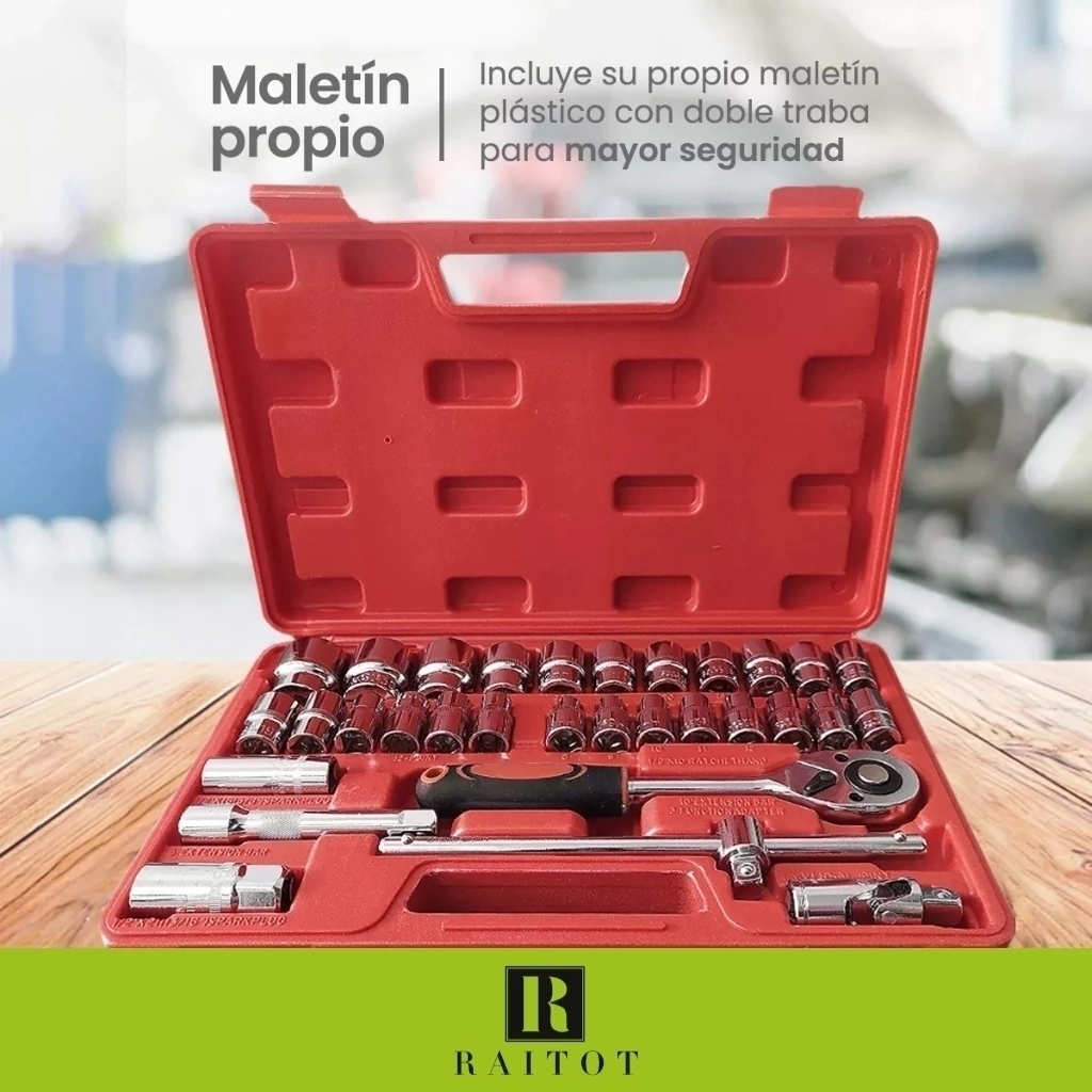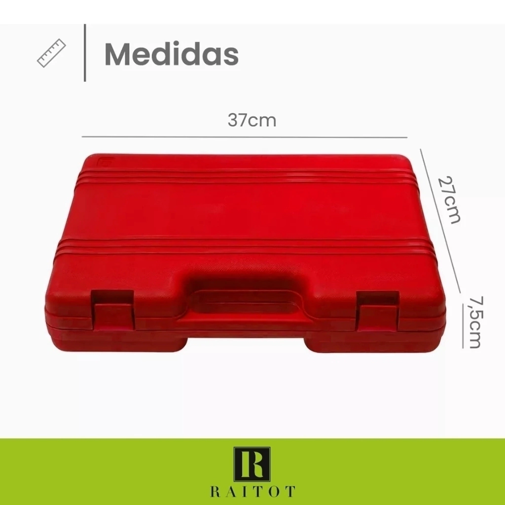 ¡El Set de 32 Herramientas Raitot es el kit perfecto para el mantenimiento general del hogar y vehículos! Con una amplia variedad de herramientas de mano, como llaves, bocas, adaptadores y más, este set está diseñado para ofrecerte la versatilidad y el rendimiento que necesitas en cada tarea. Viene en un práctico estuche para un transporte fácil y organizado, ideal para reparaciones de vehículos, mantenimiento de bujías, neumáticos y mucho más.